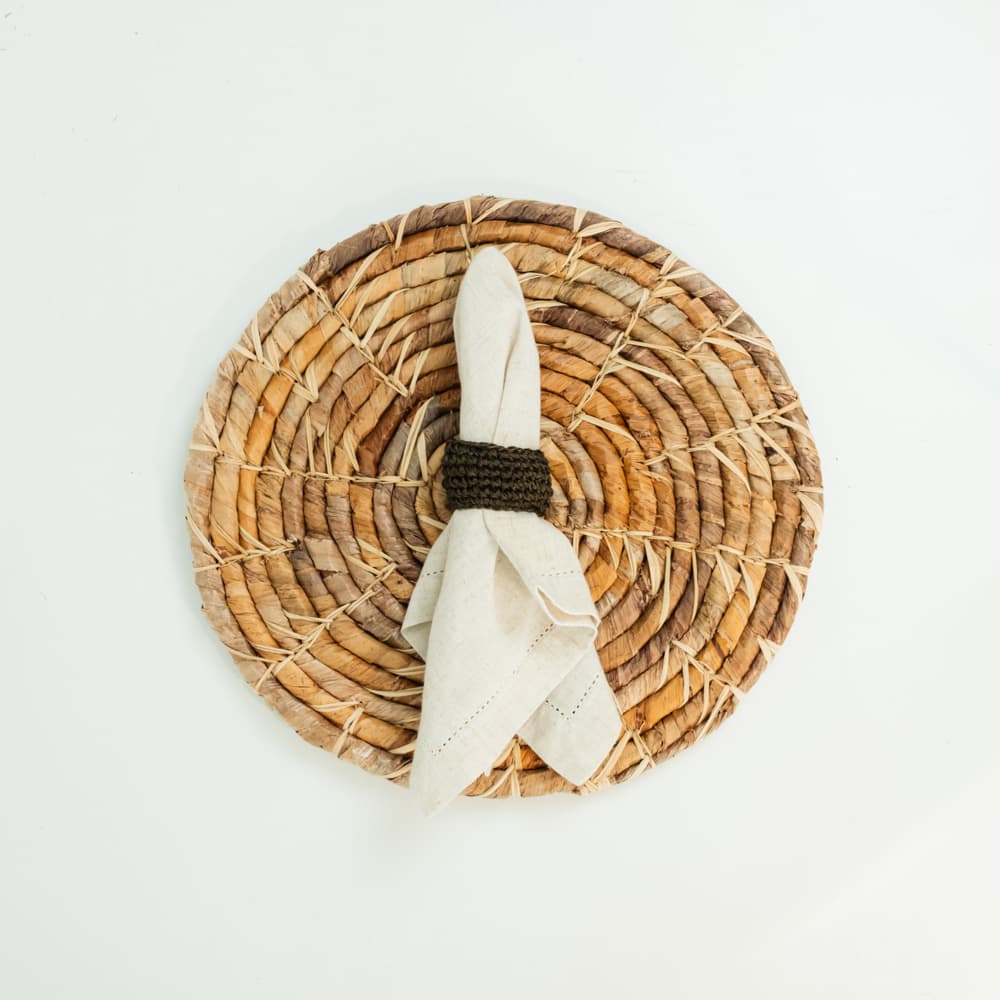 Individual tejido en calceta de plátano de 35 de diámetro. Producto artesanal hecho a mano, puede variar levemente medidas y tonos.