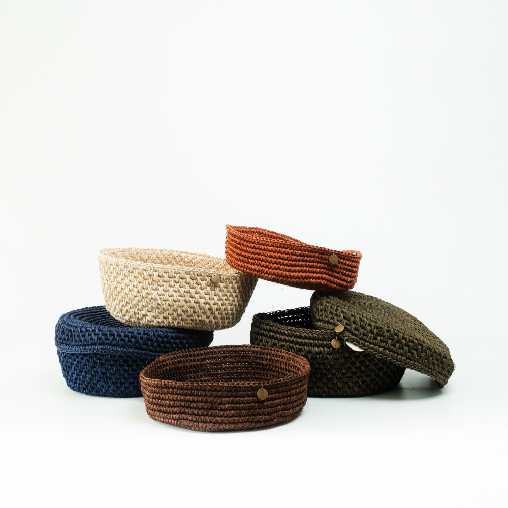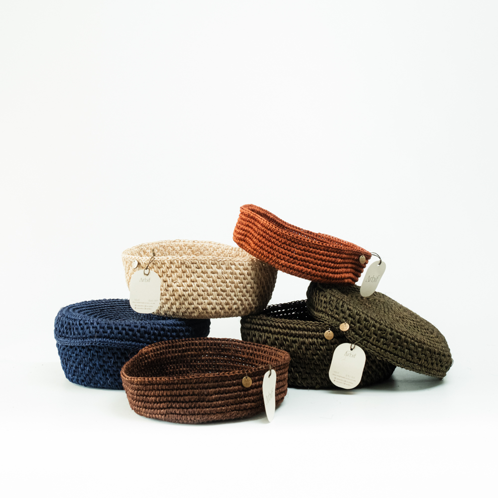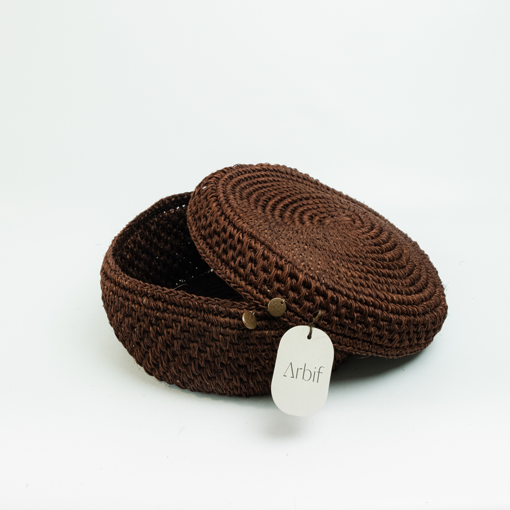 Panera tejida en fique a dos agujas de 23 x 10 con tapa. Producto artesanal hecho a mano, puede variar levemente medidas y tonos.